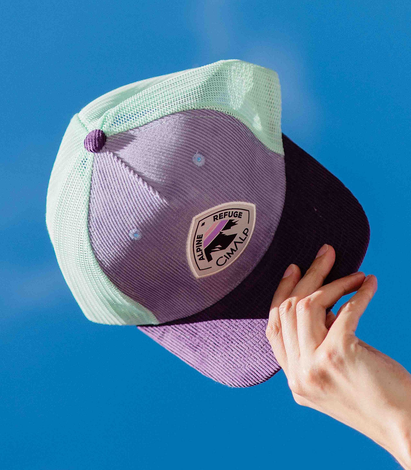 La Coriot ha sido diseñada para proteger del sol sin retener el calor. Sus paneles traseros de malla aireada permiten la circulación del aire, y la visera curvada cubre el rostro de forma eficaz. Te acompaña en cada salida sin generar molestias. El terciopelo de canalé en la parte delantera afirma un carácter alpino sin concesiones.