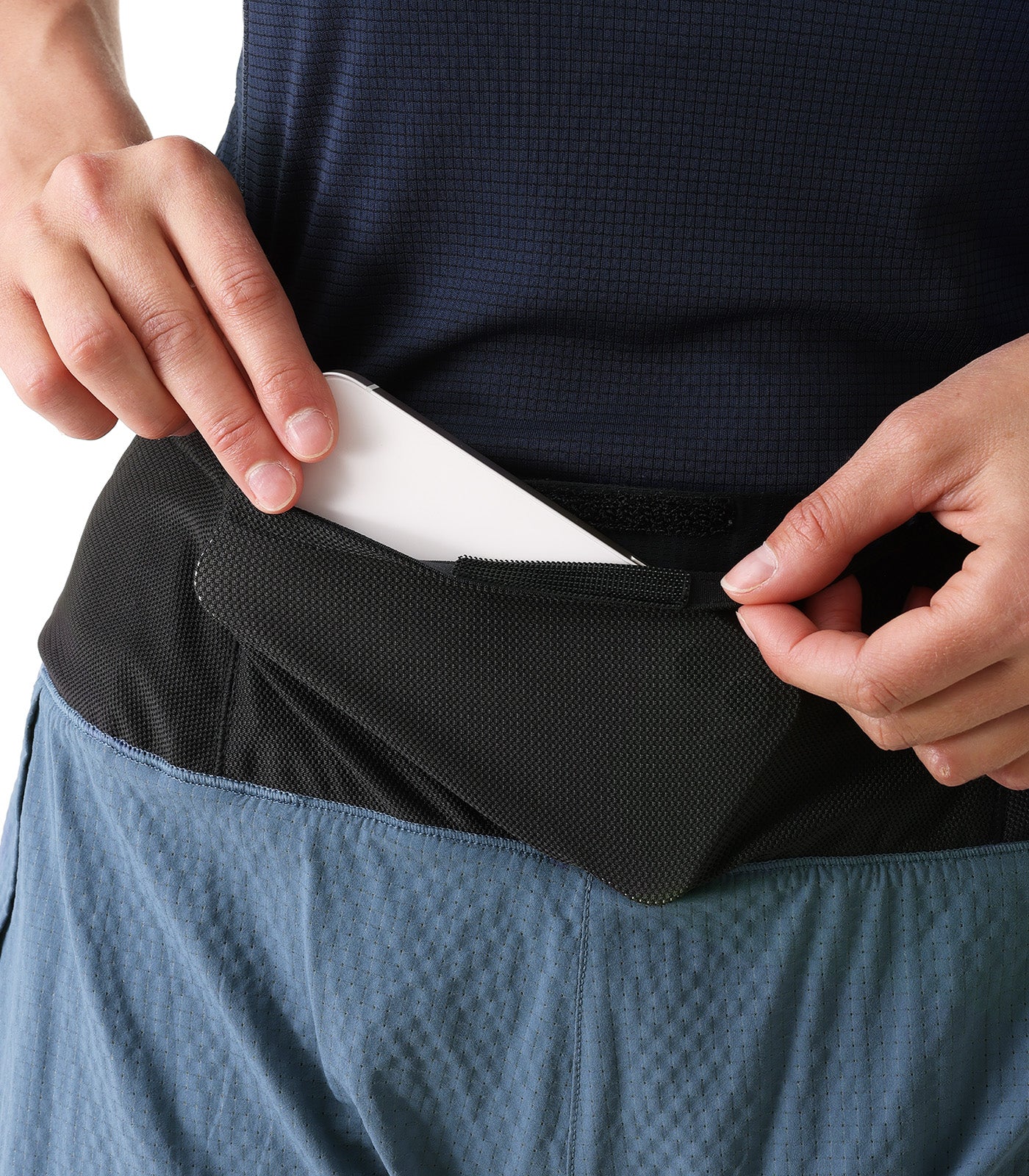 La cintura di trasporto integrata a 4 tasche sostituisce una cintura di idratazione. 120 g sulla bilancia, zero rimbalzo in corsa - tutto il rifornimento segue il movimento senza aggiungere uno strato supplementare alla vita.